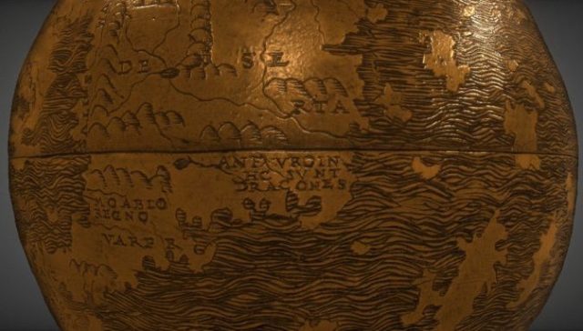 “hic sunt dracones“ (here be dragons), Hunt-Lenox-Globe, copper, c. 1508, New York Public Library.